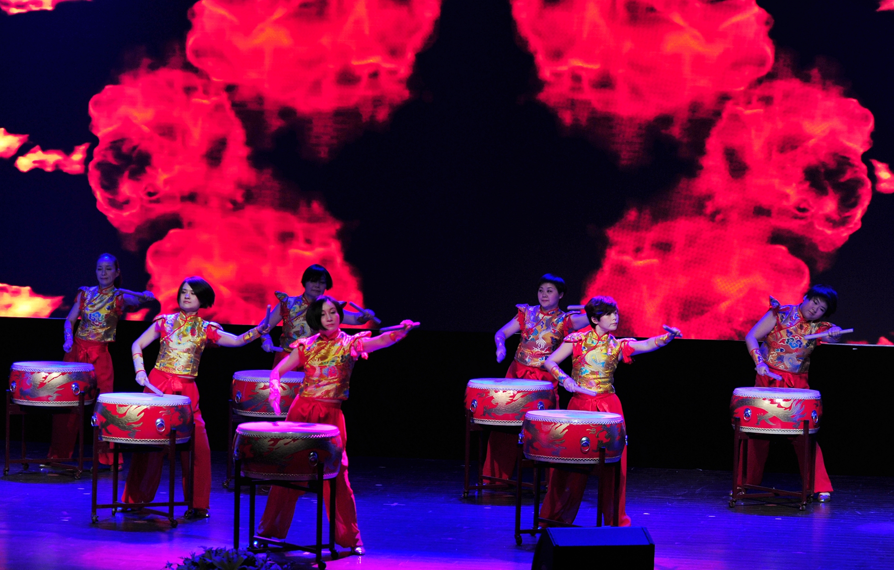 上海宝相阁众居士为大家带来的中华鼓合奏《法鼓震天》,拉开了2015“和光雅音”新春祈福音乐会的序幕。