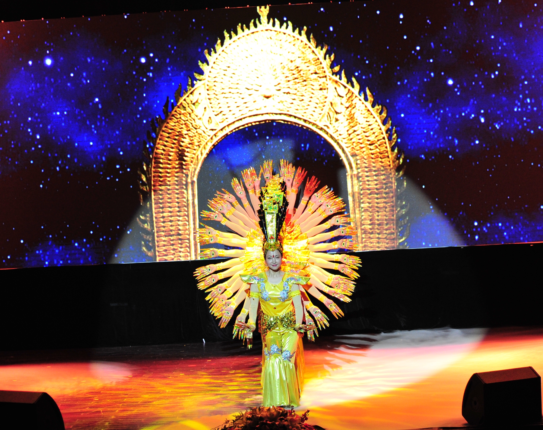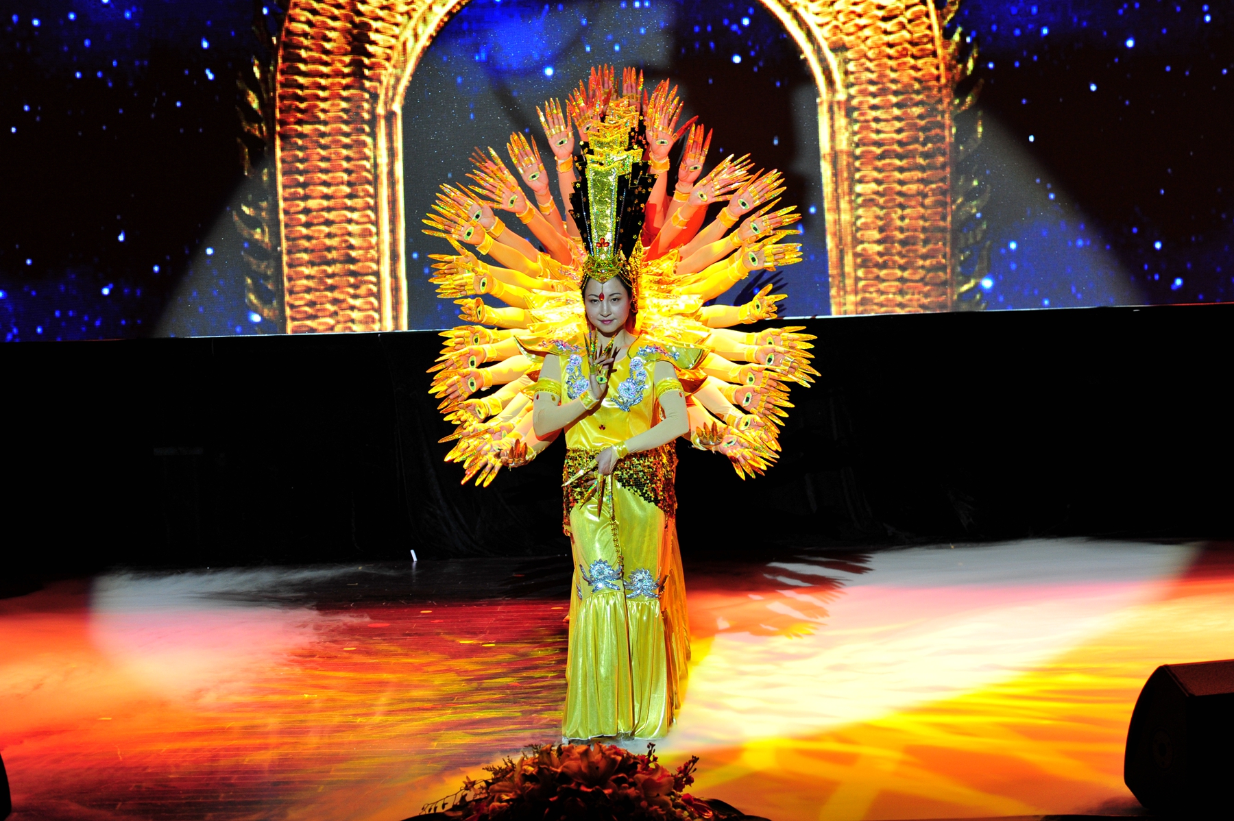 上海梵呗歌舞团表演舞蹈《千手观音》。强烈的视觉和心灵的震撼,使我们感受到观音菩萨无所不在的、浓浓的慈悲。