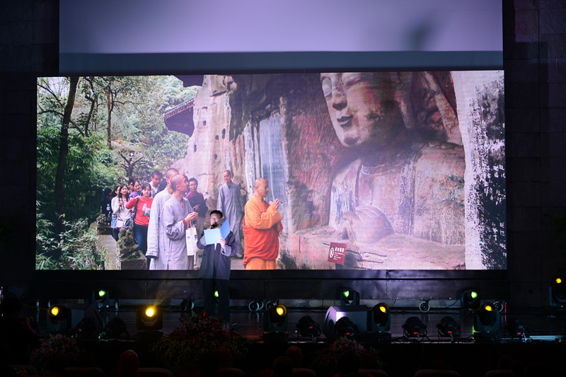 主持人智德居士诗朗诵《行者之歌》,汇报了两年以来的学佛感悟,和对恩师的真情告白,深沉感人。
