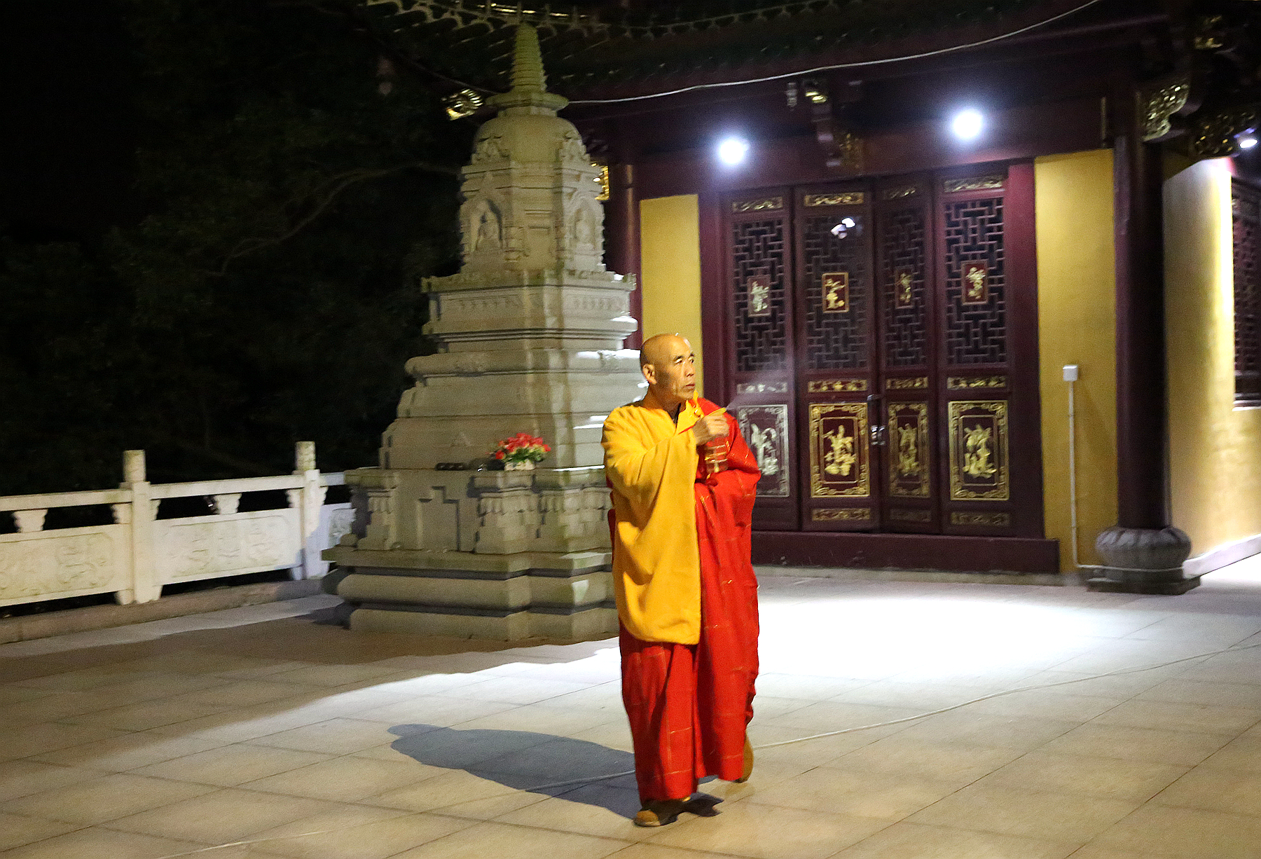 新的一年即将开始,2014年12月31日(农历十一月初十)傍晚 , 慧日禅寺庄严的大雄宝殿灯火辉煌,香烟飘渺,四众弟子云集,为恭迎西方极乐世界接引导师阿弥陀佛圣诞,同时恭祝一代圣僧悟公上人93华诞吉日良辰,由当家果义法师举行甘露净坛仪式。
