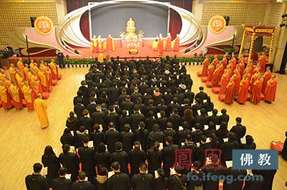2015年2月18日晚,2015年“温暖除夕夜——上海社会各界迎新春慈善晚会”在上海玉佛禅寺觉群楼多功能厅隆重举行。(图片来源:凤凰佛教)