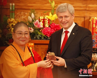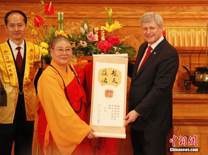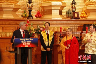 加拿大总理哈珀在中国春节访多伦多佛教寺庙