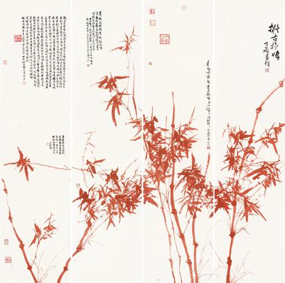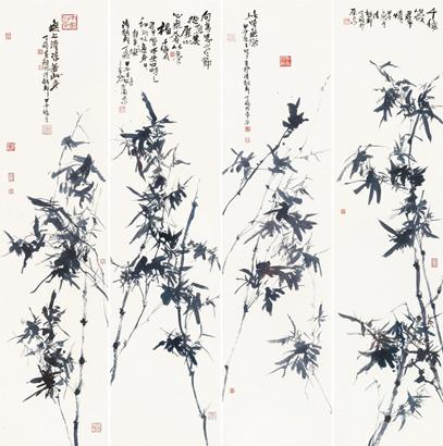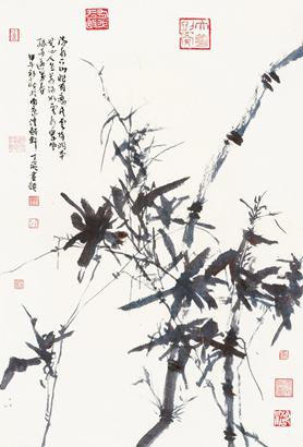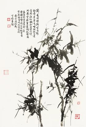 丁飞的作品中洋溢着生命力和激越的冲动,其在艺术上的独创性在于悄然地实现了以墨为主的传统水墨体例向以色为主的现代水墨体例的转化。观其禅林画境作品,“竹”即“禅林”,能见动影,听似有声,如见真竹,胜似真竹,人即是竹,竹即是人,人化竹,竹化人,体现了画家追求自然、造化自然的哲学思想和美学理念,诠释着艺术家对禅林的特别凝视和对生活的热爱。