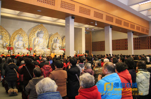 茶话会结束后,万佛寺隆重举行了庄严殊胜的“广慈功德会、上海万佛寺2015年春节茶话会吉祥延生普佛”法会。