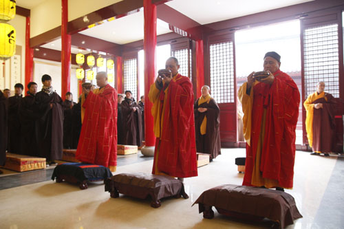 2015年2月10日武汉归元禅寺昌明老和尚纪念堂正式对外开放,归元禅寺现任方丈隆印大和尚带领两序大众在纪念堂诵经祈福。