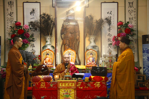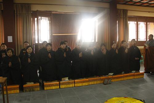 随后,皈依仪式在法堂举行。数十位信众发心皈依。同觉寺方丈曙提法师细心为信众开示皈依的意义、皈依的发心以及皈依后的行持。