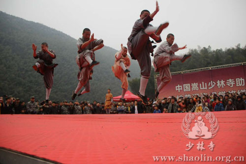 杨岐普通寺祖堂修缮完工庆典开光法会由少林寺首座永福法师,天津盘山北少林寺监院延沛法师,杨岐普通寺监院道源法师共同主持,法会结束后,少林寺武僧团为参与信众展示了精彩的少林功夫,赢得阵阵喝彩。