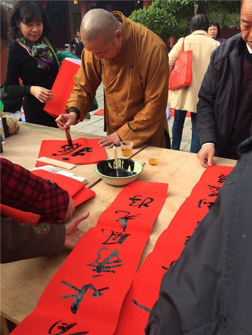 2015年2月3号(农历十二月十五日),厦门梵天禅寺举行新年祈福送春联活动,梵天禅寺住持仁慈法师亲自提笔为广大市民书写新春对联,并在寺庙法会为护法善信做开示,祝福广大善信在新的一年里阖家增福增寿、平安健康、万事如意!