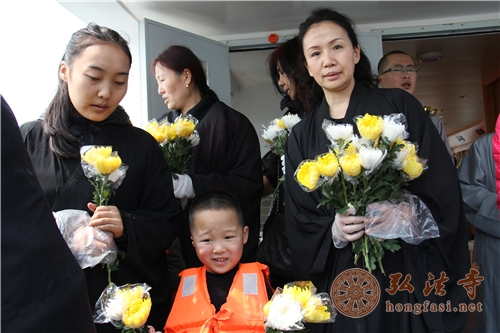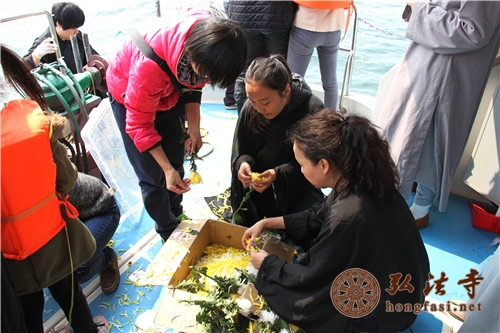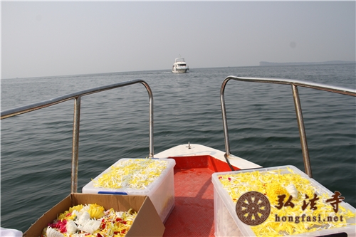 上午9时许,弘法寺往生堂梵音阵阵,庄严肃穆,白云长老灵骨盒上覆盖着五彩缤纷的鲜花。印定长老与十方信众一起,以最朴素、最庄严的方式,为白云长老举行庄重的灵骨海葬仪式,完成长老生前最后的嘱托。