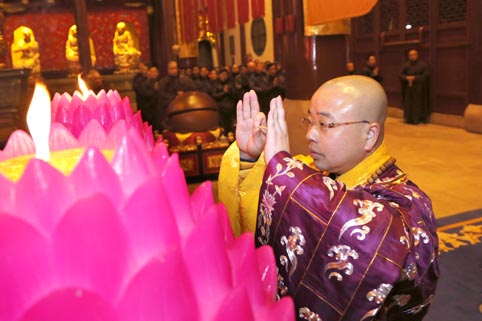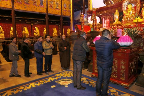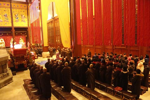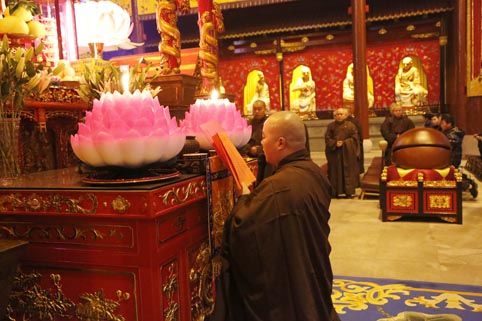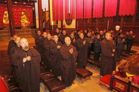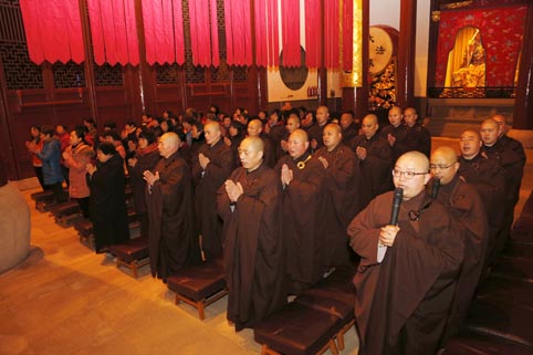 2015年2月14日(农历甲午年十二月廿六)清晨五时至七时,绍兴市炉峰禅寺暨戒珠讲寺、长寿寺、万福寺、半搁寺“祈福 沐恩 消灾 吉祥”延生普佛祈福法会在炉峰禅寺大雄宝殿隆重启建。