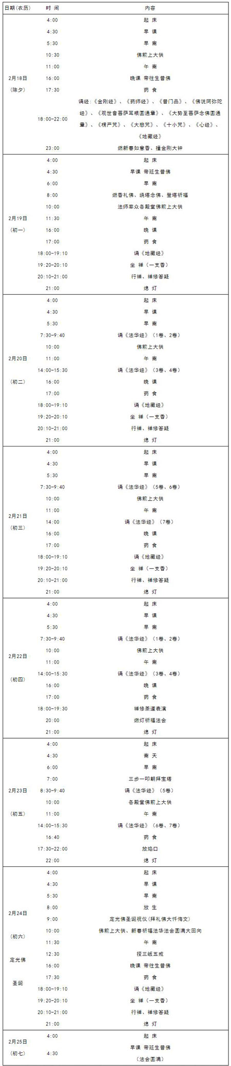4. 大年初七:早课带吉祥延生普佛,法会圆满结束。