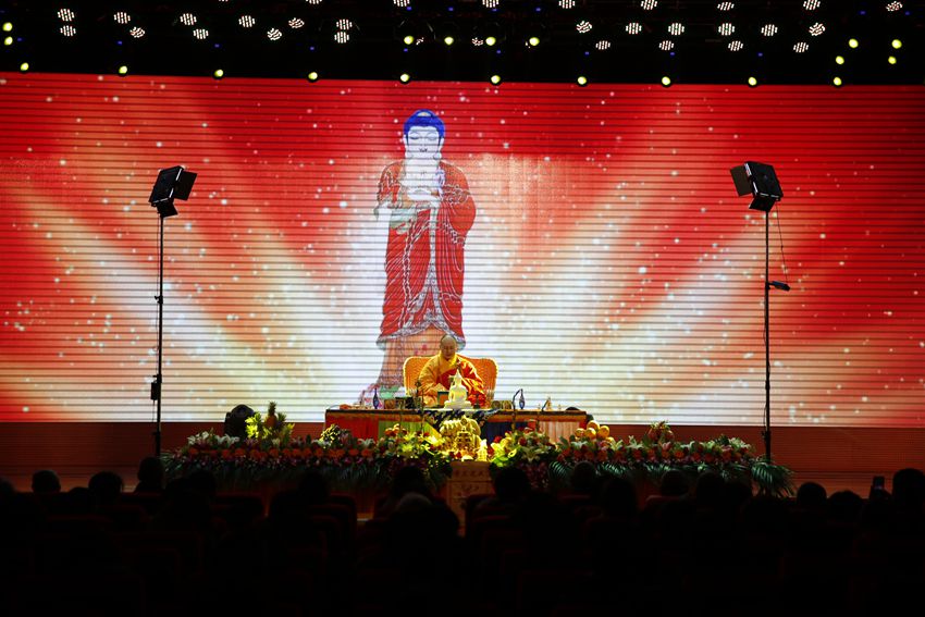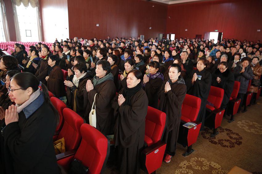 信众们承甘露之润,喜惠风之畅,息心静虑,合掌聆听: