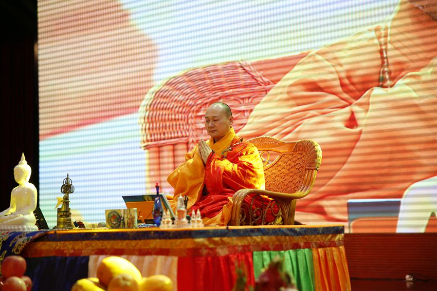 灵山法会何曾散,此地神光满。下午2时,上传下喜法师主持慈悲甘露净坛。会场之内,四众云集,南北东西,虔聚道场。
