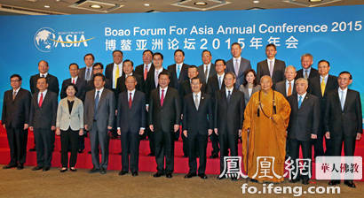 2015年3月28日上午,国际佛光会创会会长暨佛光山开山尊长星云大师,出席博鳌亚洲论坛2015年年会开幕式。在开幕式前,国家主席习近平会见了星云大师和台湾前副领导人萧万长,习主席与星云大师握手致意。