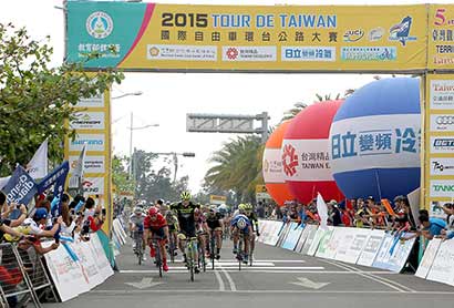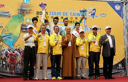 2015国际自由车环台公路大赛,3月26日第五站“台湾观光杯长途公路站”,上午9点正式启程,300多位自由车好手从尖山埤江南度假村出发,沿途行经西拉雅国家风景区、佛光山佛陀纪念馆,终点抵达大鹏湾国家风景区,圆满5天赛事。