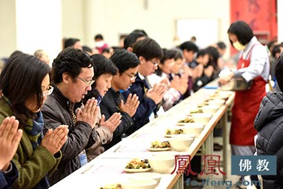 学者体验佛门过堂(图片来源:凤凰佛教)