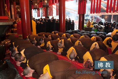 法师虔诚礼佛(图片来源:凤凰佛教)