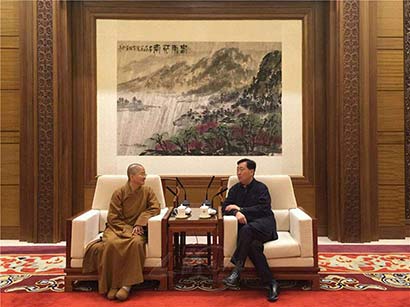 佛陀纪念馆馆长如常法师带领副馆长如元法师,在中国非物质文化遗产保护中心主任田青、北京光中文教馆执行长慧宽法师、台湾人间卫视总经理觉念法师等陪同下,拜会了国家文物局,针对佛首捐赠仪式、主协办单位、展示地点及媒体规划等细节协调。(图片来源:佛光山佛陀纪念馆)