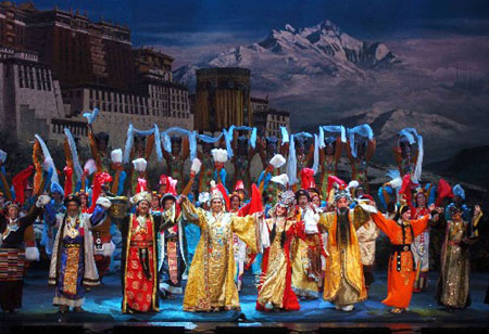 “以前表演一场藏戏需要两三天,为了让传统藏戏适应新时代,我开始创作剧本,时间控制在三小时内,以折子戏的形式上演。”俄旺旦真笑着说,他第一次创作出《松赞干布与文成公主》剧本并编排后,就迫不及待与团员们坐着大篷车在川、甘、青交界处巡回表演。