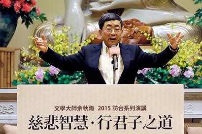 3月6日,以《文化苦旅》和《山居笔记》风靡华人世界、抚慰无数灵魂的知名人文学者余秋雨,在高雄佛光山如来殿举办第三场系列讲座“慈悲智慧·行君子之道”。他直言,佛教的空性主张,大大减轻君子肩上的沉重包袱;佛法的慈悲为怀,让君子之道获得升华;佛法东传,不仅挖深、加宽儒家君子的内涵,更有助于深化精神养分,延续中华文化命脉。