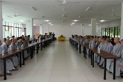 大和尚在开学典礼上特别讲述了今年的3月19日柬埔寨王国即将迎请本焕长老舍利永久安奉和泰国本焕寺开光的特殊因缘。大和尚勉励此次护送本老舍利赴柬的学僧们,一定要用大乘佛教的精神展现中国佛教僧人的风范,以此让南传佛教的广大信众对大乘佛教产生信心。