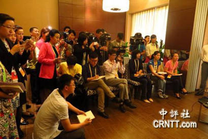 星云大师特地为海南媒体举行记者会。(中评社彭媁琳摄)