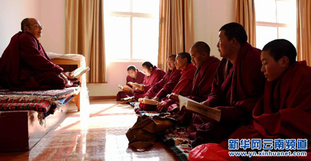 云南佛学院迪庆藏传佛教分院师生在上佛法课