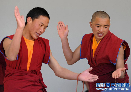 学僧在辩经 通过问答的形式进行佛法理论的交流、探讨