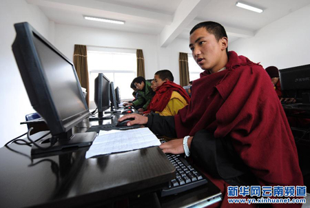 学僧诺桑扎巴(右)在上计算机课