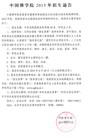 九、本《招生简章》可在地方佛教院校、寺庙和佛教组织范围内张贴。