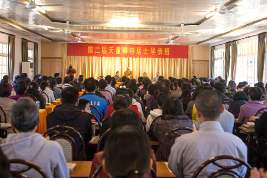 现今诚信大和尚主席天童,谨遵佛陀慈悲智慧之教诫,追随前辈光风霁月之传承,特于2013年始设立“天童禅寺居士学佛培训班”。在大和尚的关心指导下,在常住与四众的悉心护持下,两届培训班得以顺利举办。年来,古寺生机再次焕发,佛陀正法润泽众生,天童禅法流传甬地,可谓“诸佛生欢喜,龙天降吉祥”。