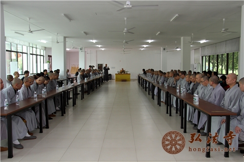 最后大和尚希望学僧们要牢记本焕学院的校名、校训和学院的宗旨,这是学僧生涯的核心,只有掌握住这个核心,才能正确的确立好在本焕学院学习目标和人生的方向。大家要具足正信正行,深信因果,才能行愿大千。