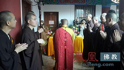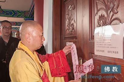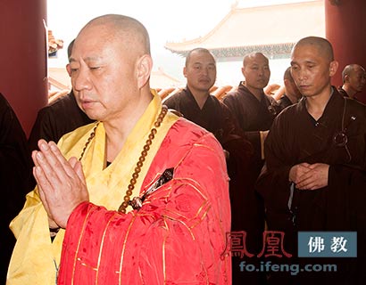 2015年3月21日,珠海普陀寺为龙象法师举行闭关“送关”仪式。(图片来源:凤凰佛教)