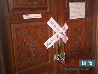 龙象法师入关房,锁闭关门。(图片来源:凤凰佛教)