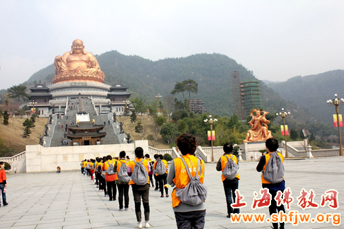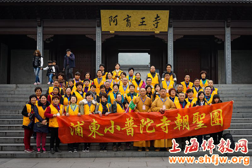 2015年3月21日至22日,上海浦东小普陀寺组织了为期两天的宁波佛教朝拜参访活动。在常住法师的带领下,小普陀护法居士朝圣团一行53人先后参访了宁波著名寺院七塔寺,天童寺,阿育王寺,通过一天的参访行程,感受了名刹古寺的悠久历史和历劫重生的艰难历程,瞻礼佛祖舍利,感怀盛世昌隆和佛法的复兴。第二天朝拜雪窦山资圣禅寺弥勒道场,远观以契此和尚为原型塑造的露天弥勒铜佛造像,气势恢弘,人间弥勒的感召让人由衷顶礼膜拜。