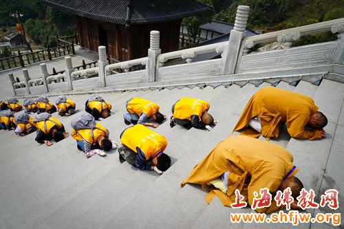 上海浦东小普陀寺三步一拜朝圣雪窦山功德圆满