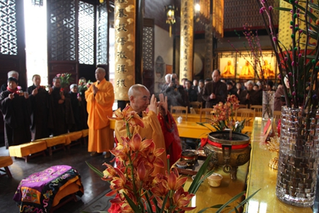 2015年3月26日上午9点,浙江省佛教协会副会长、宁波天童禅寺方丈诚信法师,应邀赴清道寺开坛说法。