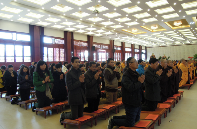 11时30分,举行了午斋过堂仪式,全体僧众及居士,在斋堂依教规过堂用斋。