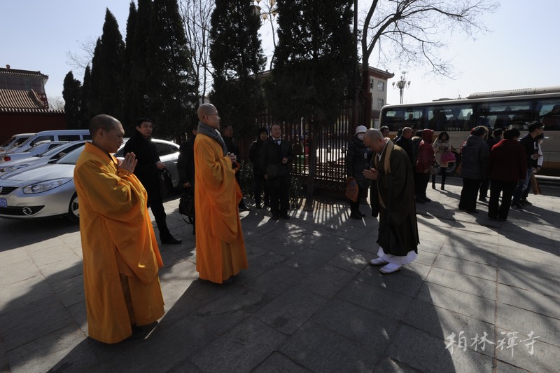2015年3月3日,河北省佛教协会秘书长肖占军居士陪同日本佛教临济宗参访团——天龙寺派管长佐佐木容道、东福寺派善慧院住持平住惠光、妙心寺派成道寺住持赤松弘法、天龙寺派庆德院副主持尾崎省悟、建长寺派青龙寺副主持外冈大门等一行二十四人前来参拜赵州祖庭,柏林禅寺监院利生法师和知客界志法师接待了日本客人。