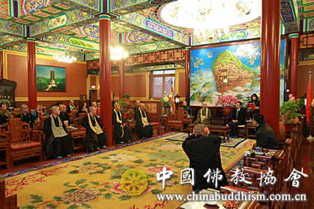 中国佛教协会张琳副秘书长在广济寺怀远堂会见访华团一行