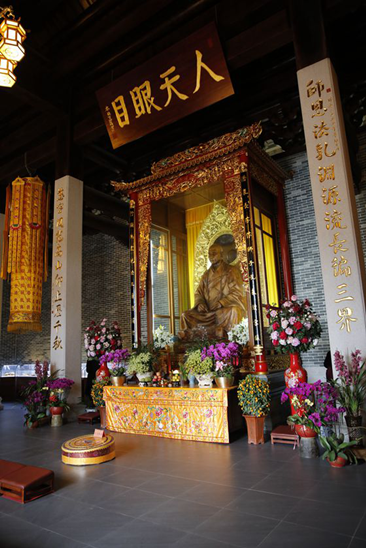 17日下午,传喜法师一行来到位于广州荔枝湾闹市区的华林寺朝拜祖庭华林寺。华林寺是达摩祖师的西来初地,当时名为“西来庵”,是祖师传佛心印的第一道场。华林寺内主要供奉的是达摩祖师和五百罗汉,殿内有多幅对联说法,墙上雕刻的壁画内容叙述了祖师“面壁九年”,“一苇渡江”,“只履归西”等典故,忆念祖师弘法的悲愿,启迪众生蒙昧的心智。