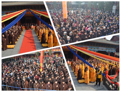 春光明媚,万里无云。2015年3月24日,河北省邢台大开元寺大雄宝殿内外经声如涛,梵音阵阵,来自邢台、邯郸各个道场的千余僧众在习习春风中合十祈福世界和平,人民安康。邢台数百名居士、游客有幸参加,共沾法喜。