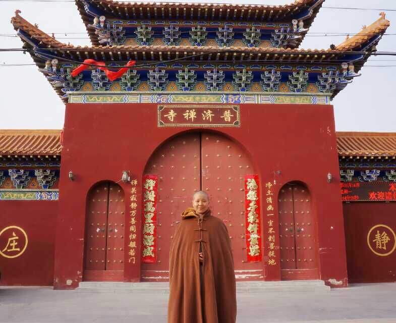 这次朝山,师父发心只要沿途经过的寺院,不管大小,都要去拜访并供养三宝,供养常住!威县的居士们说这里有座普济寺。第二天中午我们就到普济寺拜访,寺院的常宏师父热情的接待了我们,大家将随车带的物品供养三宝。