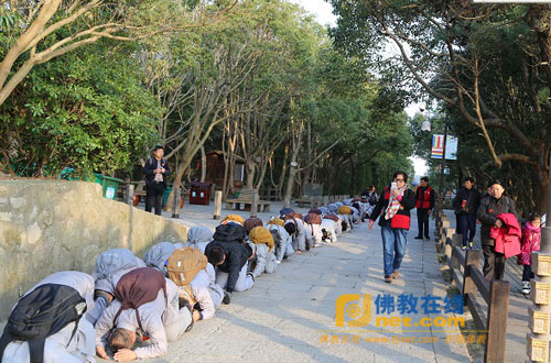 13日早上7点,惟净法师一行从苏州启程,下午抵达普陀山,随即赴西山风景区到各个寺院参学。14日早上6点30分,经过两个小时三步一拜来到南海观音前至诚礼拜,绕佛回向,以此祈愿天下太平、社会和谐、人民安康。