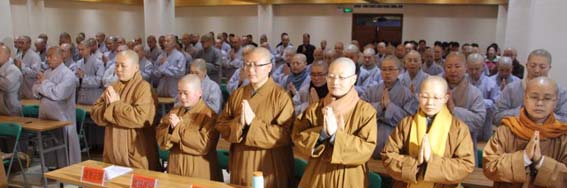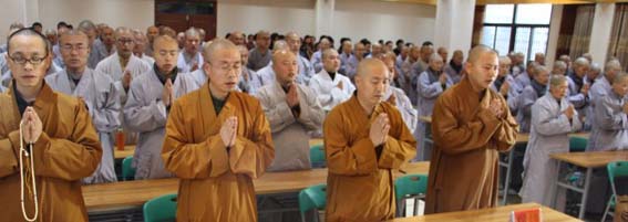 办公室主任圣悦法师对2015新学年的全体学僧提出新的要求:要求大家在新的一年要以新的精神面貌来学习,来提高自己的学习和修为,并要求大家要进一步培养道心,坚固道心,要能够经受住而各种的磨练和考验,最终来提高认识,端正修学态度,使自己建立起坚固的道心,这样才不负出家人的使命,才能树立远大高尚的愿力和远大的志向,并要求大家在新学期修学中要放下不合时宜的物质享受,养成一种良好的生活作息习惯,让身心安住在佛法上,以欢喜心和新的精神面貌来迎接新学期的到来,最终圆满完成自己的学习任务。