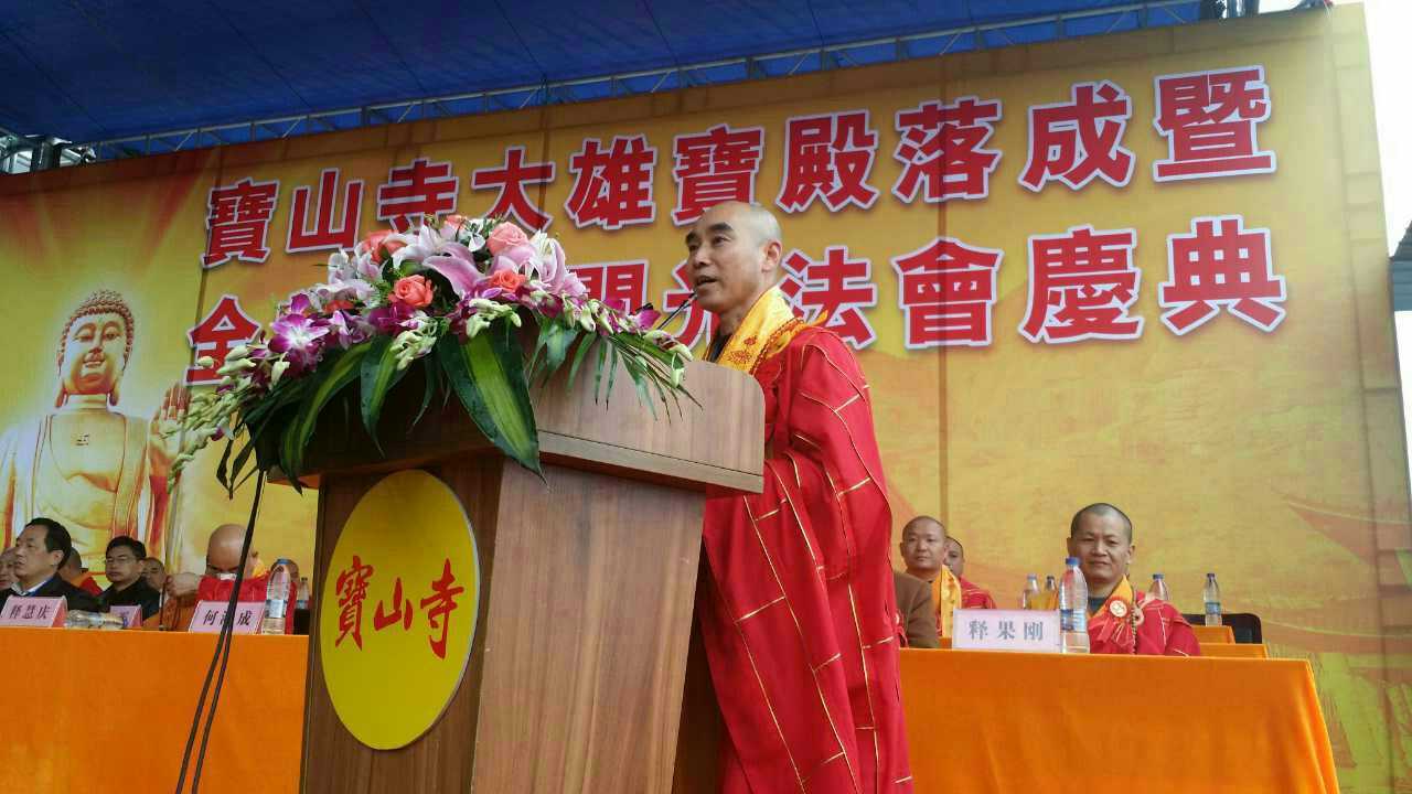 诚信大和尚代表浙江省佛教协会讲话,慧庆大和尚代表诸山长老讲话并开示,宝山寺住持果刚法师致答谢词。