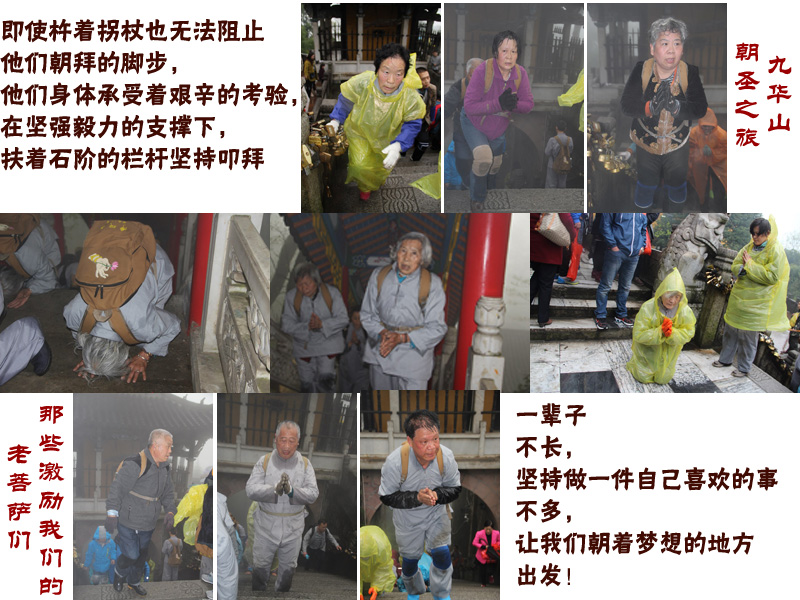 2015年4月4日到6日,来自全国各地180余人参加朝拜九华山,三步一拜、佛前供灯、感恩分享、有奖问答、法宝互动等等,孝道和互助在大家身上体现的淋漓尽致。