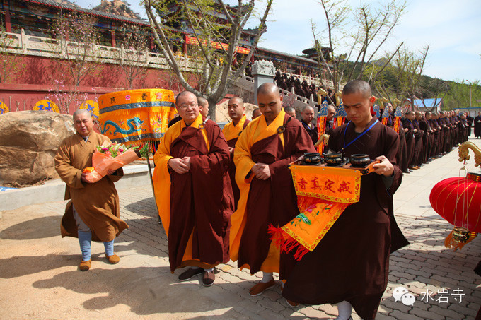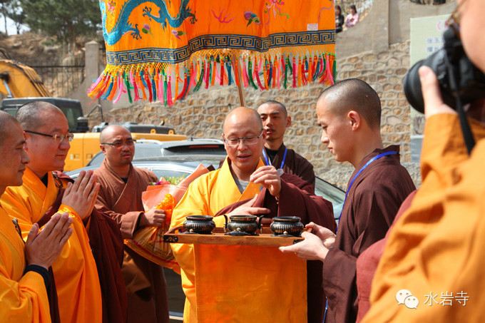 4月20日上午十点,中佛协咨议委员会副主席/福建省佛教协会名誉会长/平兴寺住持界诠长老莅临碣石山水岩寺,存海法师率领两序大众及新戒手捧香花 钟磬齐鸣山门外欢迎贵宾的到来。长老为此次三坛大戒三师之一。