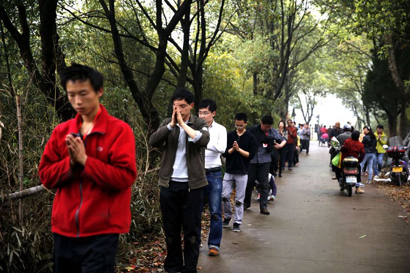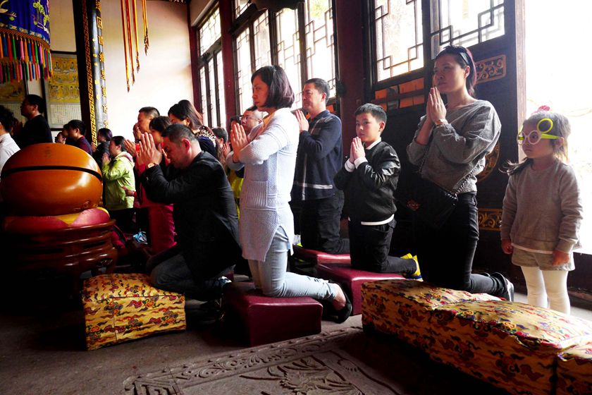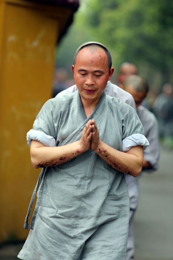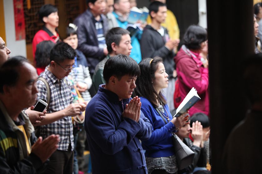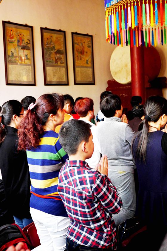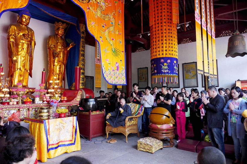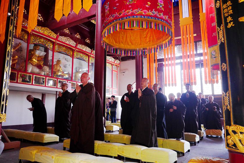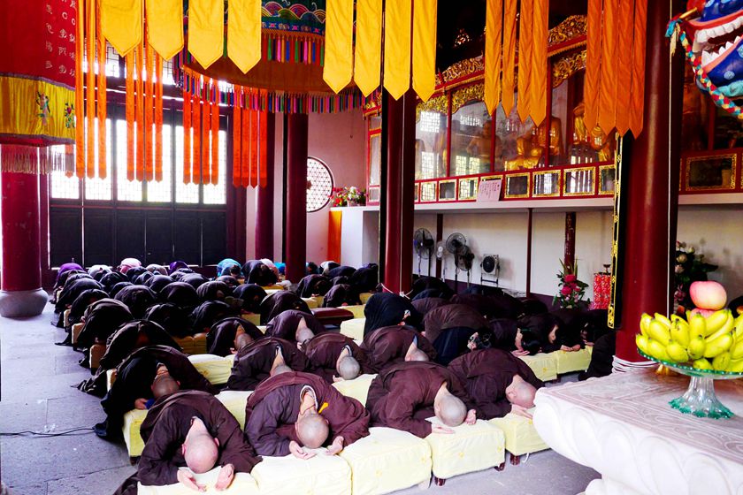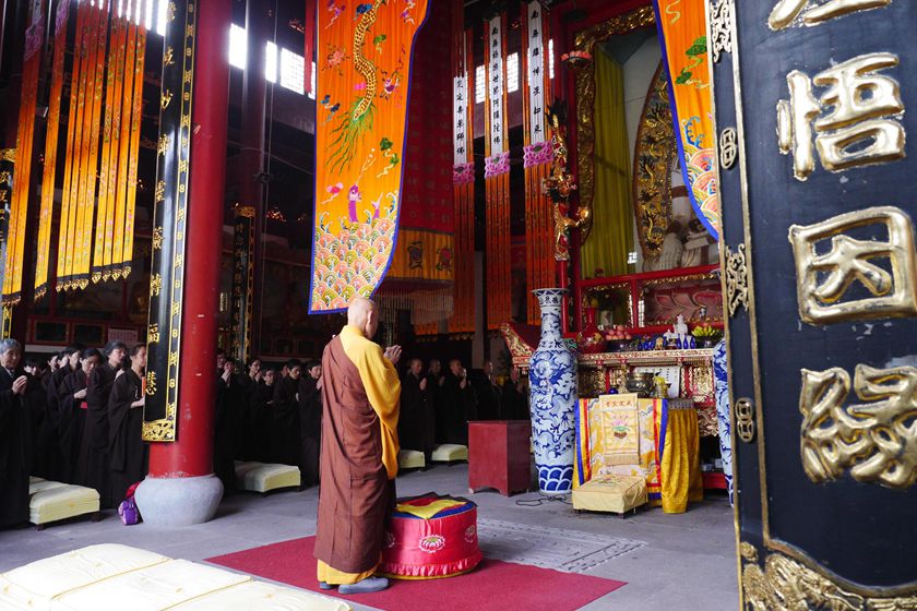 大雄宝殿里,忏悔之声诚恳猛烈;三圣殿中,虔诚专注的佛子即将皈依佛门,等待着神圣一刻。