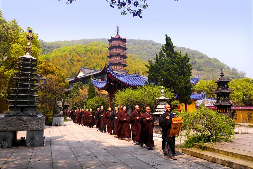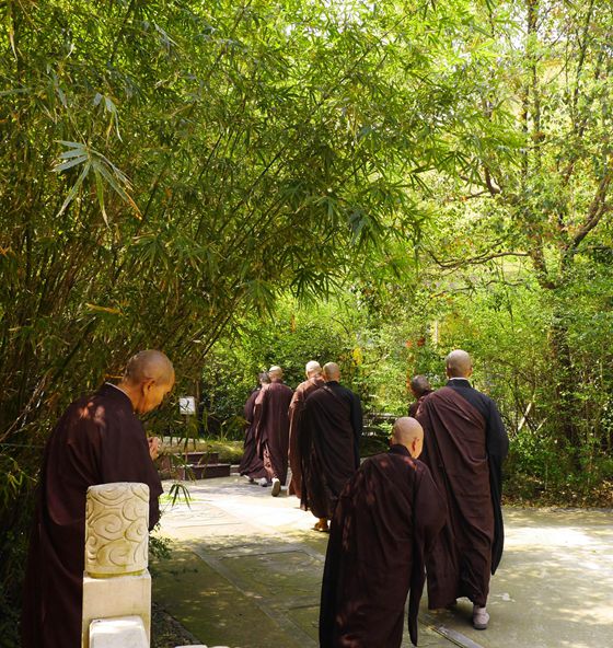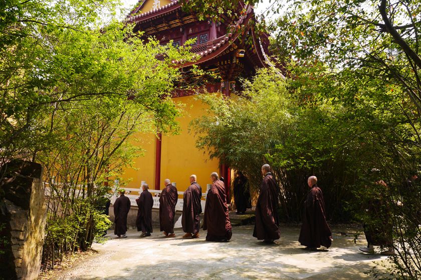 2015年4月5日,时值清明佳节。今日清晨,惠风和畅,不远处的山上,时时响起祭祖的鞭炮声。慧日禅寺内,祭祖方式别具一格,百余位信众恭肃严整,收摄一心,在法师们的带领下,围绕慧日禅寺拜山。